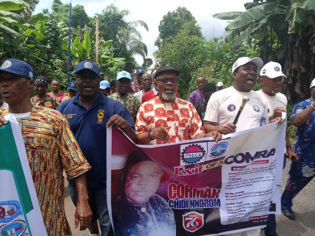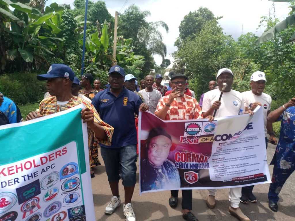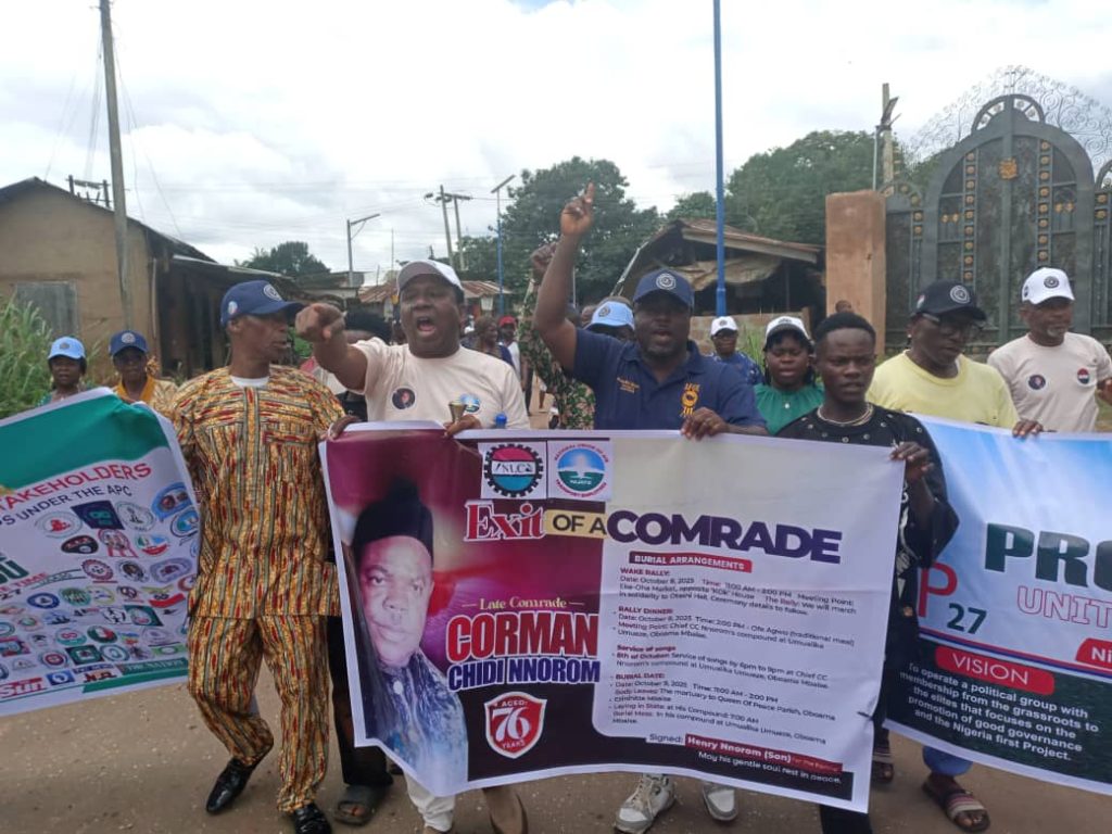 The Nigeria Labour Congress (NLC) In collaboration with the National Union Of Air Transport Employees (NUATE ), All Progressives Congress (APC) Support Groups And other Professional Groups In Nigeria yesterday held a solidarity funeral rally in Oboama Ezinihitte Mbaise Local Government Area of Imo State in honour of Late Comrade Chidi Nnorom who will be laid to rest today, Thursday, 9th October 2025.